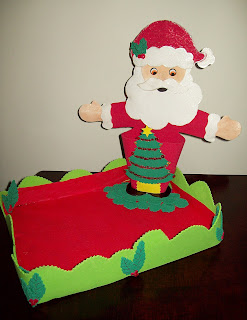 Esta foi uma bandeja para bombons que fiz no Natal, feita em EVA, e fundo de isopor com TNT.