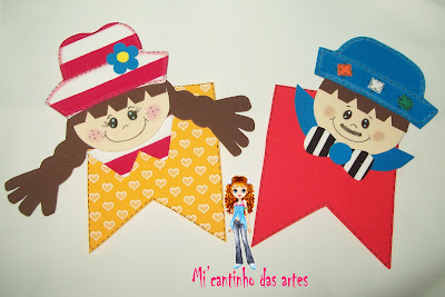 Bandeirinhas de EVA decoradas, estes moldes são da Jacirinha,